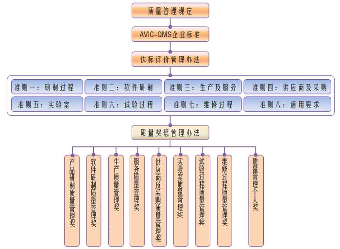 航空工業(yè)樹立“質(zhì)量是航空人的生命”的工作信念,持續(xù)完善質(zhì)量管理體系,形成具有航空工業(yè)特色的《質(zhì)量管理體系要求》,以及基于過程域質(zhì)量管理體系的量化評(píng)價(jià)理論框架與評(píng)價(jià)準(zhǔn)則。AVIC-QMS(航空工業(yè)質(zhì)量管理體系)評(píng)價(jià)工作的推進(jìn)是集團(tuán)公司針對(duì)新一代武器裝備研制能力建設(shè)和體系建設(shè)需求所采取的重要舉措之一,旨在通過對(duì)質(zhì)量管理能力、管理水平及體系運(yùn)行的有效性進(jìn)行量化評(píng)價(jià),發(fā)現(xiàn)薄弱環(huán)節(jié),有的放矢的實(shí)施改進(jìn),引導(dǎo)各單位將質(zhì)量體系做細(xì)、做實(shí)。這項(xiàng)工作自2010年推進(jìn)至今,集團(tuán)公司各單位在質(zhì)量體系改進(jìn)和質(zhì)量管理能力提升方面取得顯著成效。集團(tuán)公司質(zhì)量管理體系達(dá)標(biāo)評(píng)價(jià)推進(jìn)實(shí)踐經(jīng)驗(yàn)被工業(yè)和信息化部評(píng)為全國(guó)“質(zhì)量標(biāo)桿”,同時(shí)曾榮獲“中國(guó)質(zhì)量技術(shù)獎(jiǎng)二等獎(jiǎng)”。