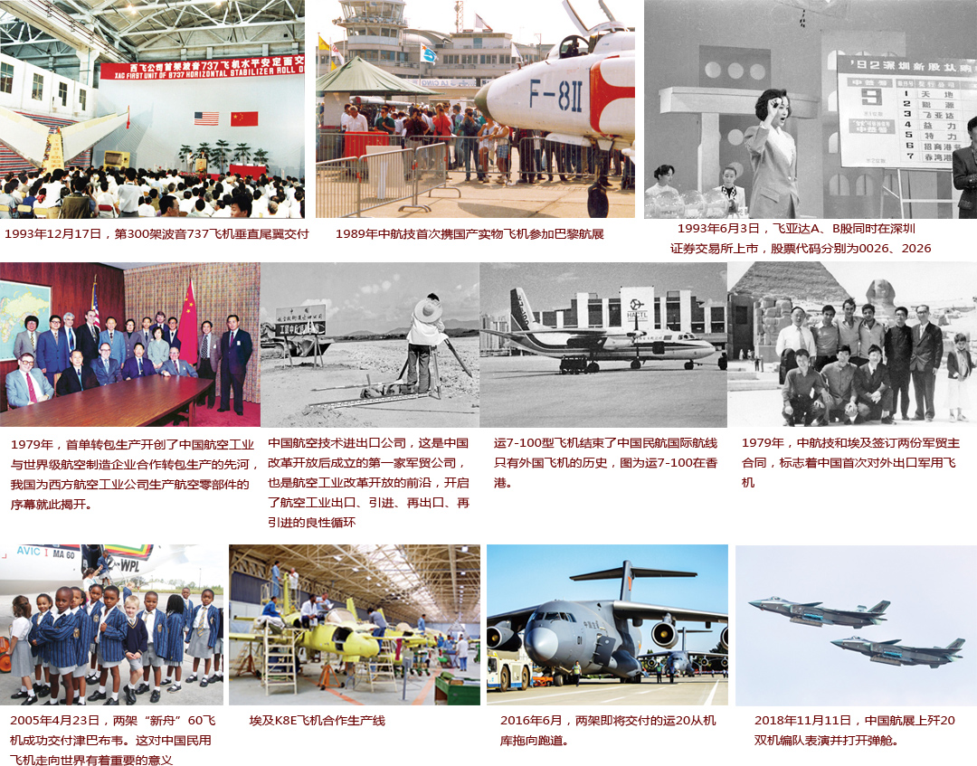 黨的十一屆三中全會之后,中國航空工業逐步調整工作重點,在全面推進各項改革的同時,開展了大規模的"軍轉民、內轉外"的戰略轉變,開創出了一個改革開放、保軍轉民、實行戰略轉移的新時代。從上世紀80年代初到90年代末,軍用飛機展開了近40個型號的研制,向部隊提供了大批航空軍事裝備;民用飛機開始改變長期發展滯后的局面,進行了20多個型號的研制與改進改型,廣泛應用于國民經濟各項領域。